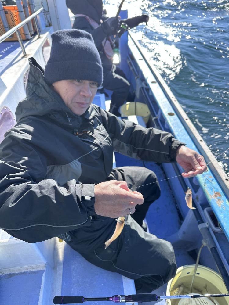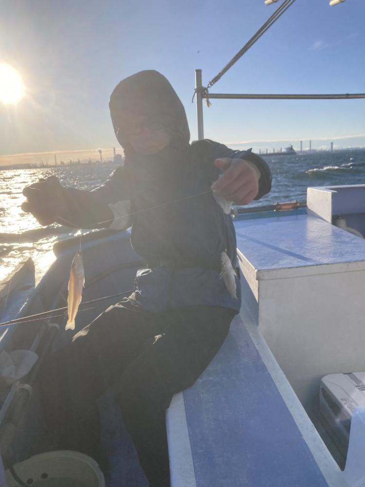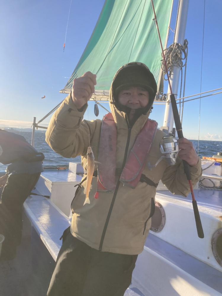朝半端な西風で釣りづらく船中たまにポツリ